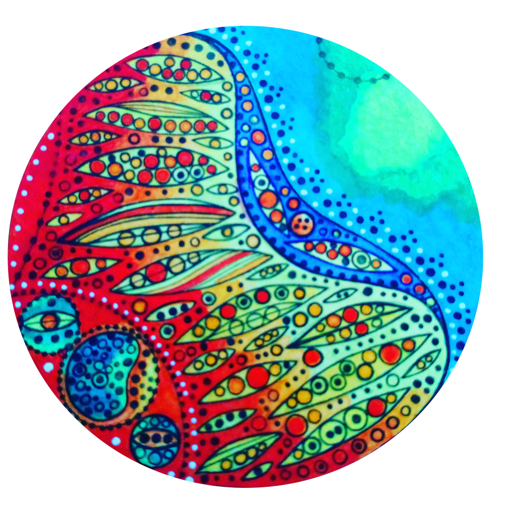 I use pen, pencil and watercolour paint to create my pieces. They are very detailed, but when creating them I find the process to be mindful.